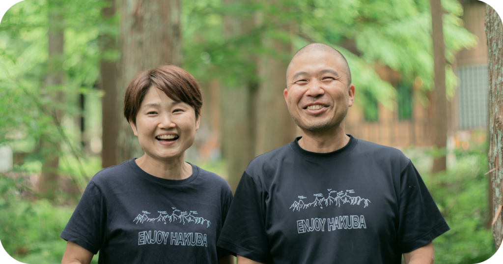 オーナーの公紀と尚美です。白馬村の自然に魅せれこちらに引っ越してきました。