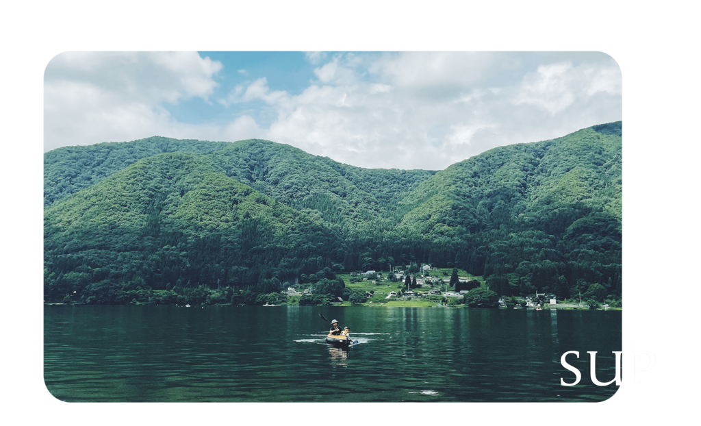 お隣の大町市に位置する湖で、SUPやカヌーを楽しむ