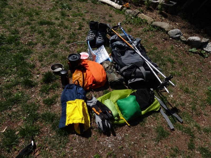 本日の持ち物は、バックパック、登山靴、ゲーター、ダブルストック、雨具、下着の予備、ツェルト、非常食、地図、コンパス、ヘッドライト、防寒着(ダウンセータ)、手袋、水筒、コンロ、カップ麺、あまあまホットティーでした。