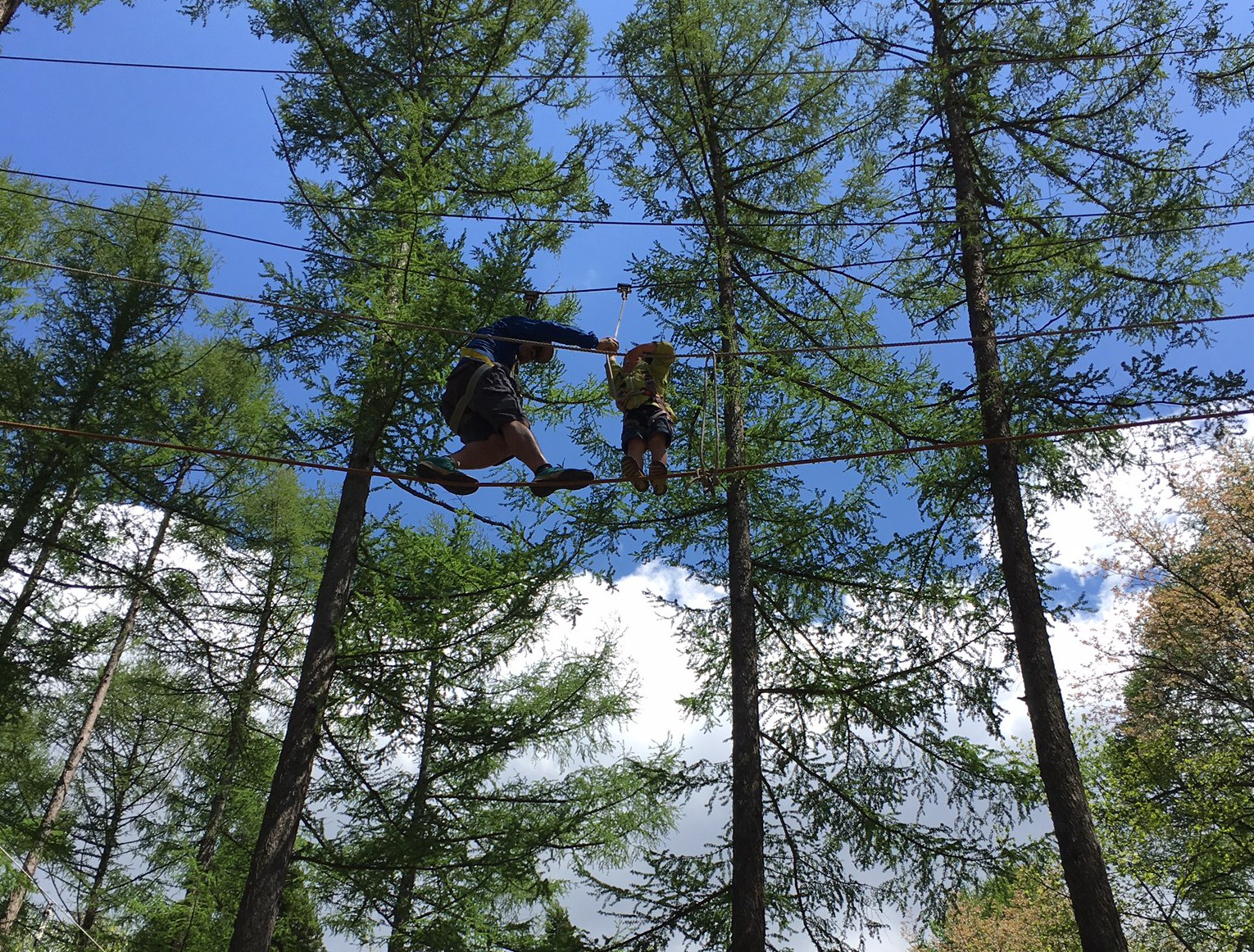 忙しいピークが過ぎたのでちょこっと抜け出して、空中8mのアスレチック『白馬EXアドベンチャー』へ