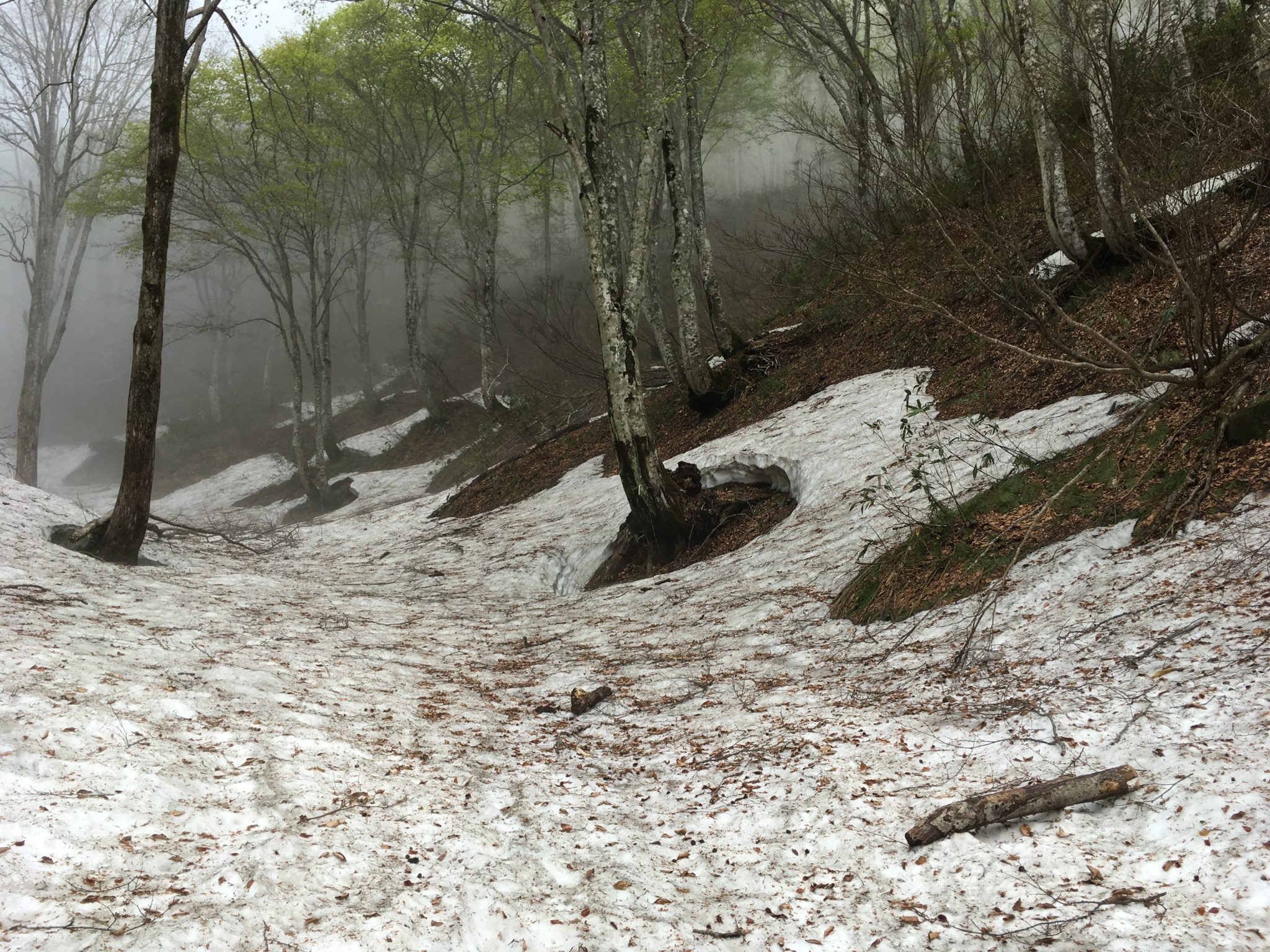 登山口から少し歩けば新緑→芽吹き&残雪→雪景色と大自然が全部あります。